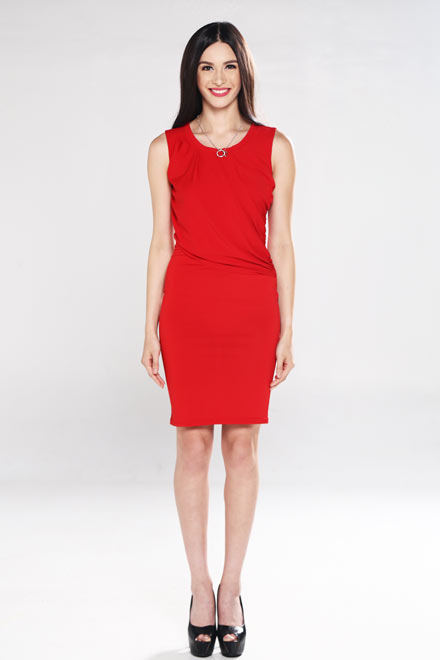 Sleeveless Shift Dress With Draping Detail In Stretch Jersey Fabric