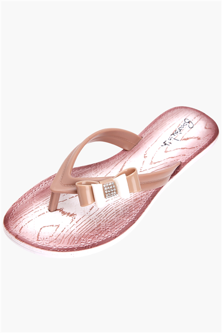 Ladies Thong Slippers With Embellished Ribbon Accent On Strap