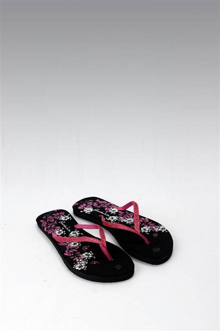 Ladies Flip Flops In Printed Floral Sole And Shimmery Thong Strap